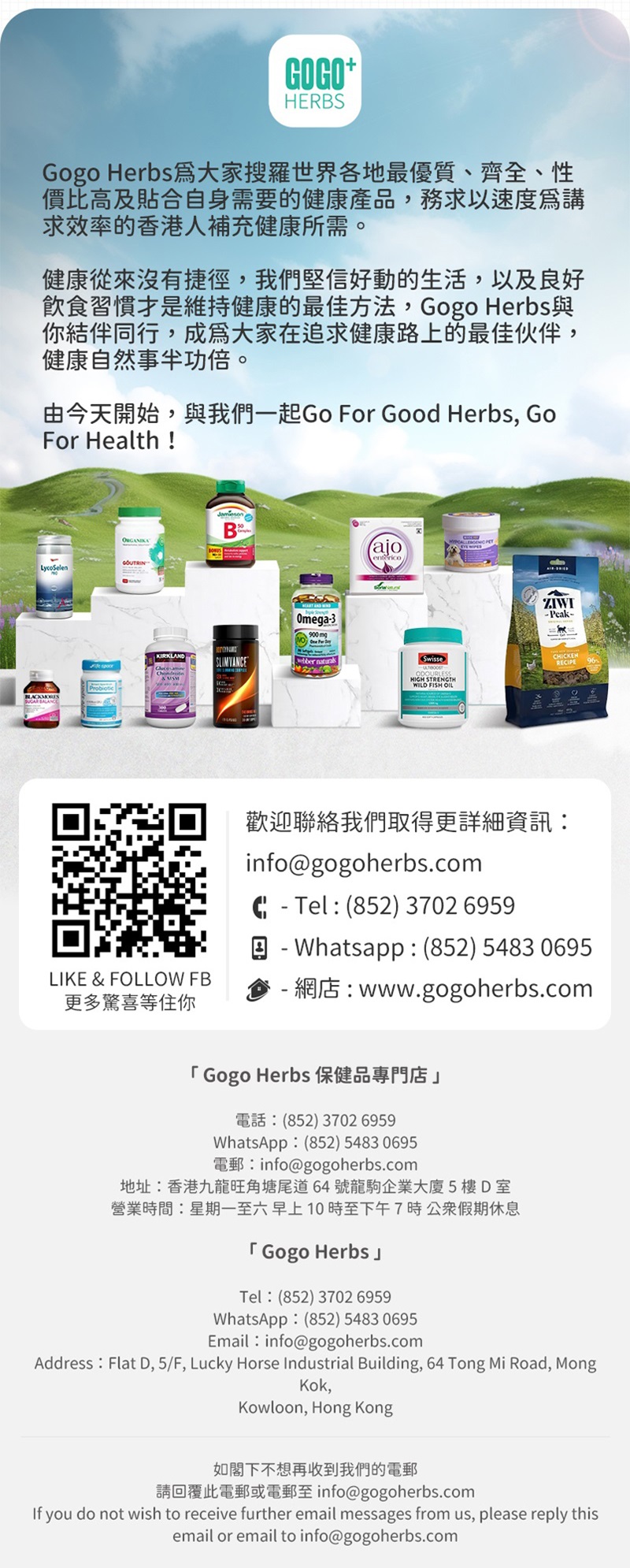歡迎聯絡我們取得更詳細資訊: gogoherbs.health@gmail.com - Tel : (852) 3702 6959 - Whatsapp : (852) 5483 0695 - 網店 : www.gogoherbs.com